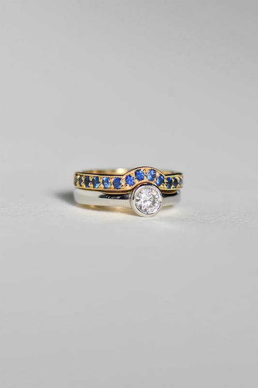 PAUL WEDDING BAND 18K GOLD · BLUE SAPPHIRE & DIAMOND