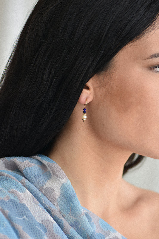 SEFIRA HOOPS / LAPIS LAZULI & PEARL GOLD · LAPIS LAZULI & PEARLRegular price $245.00 NZDRegular priceUnit price per-