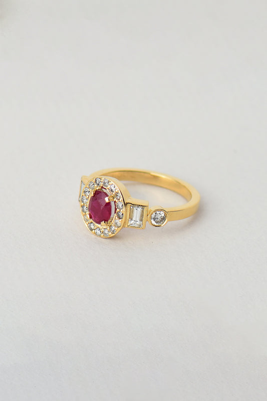BYZANTIA CONSTELLATION RING 9K GOLD · RUBY & DIAMOND